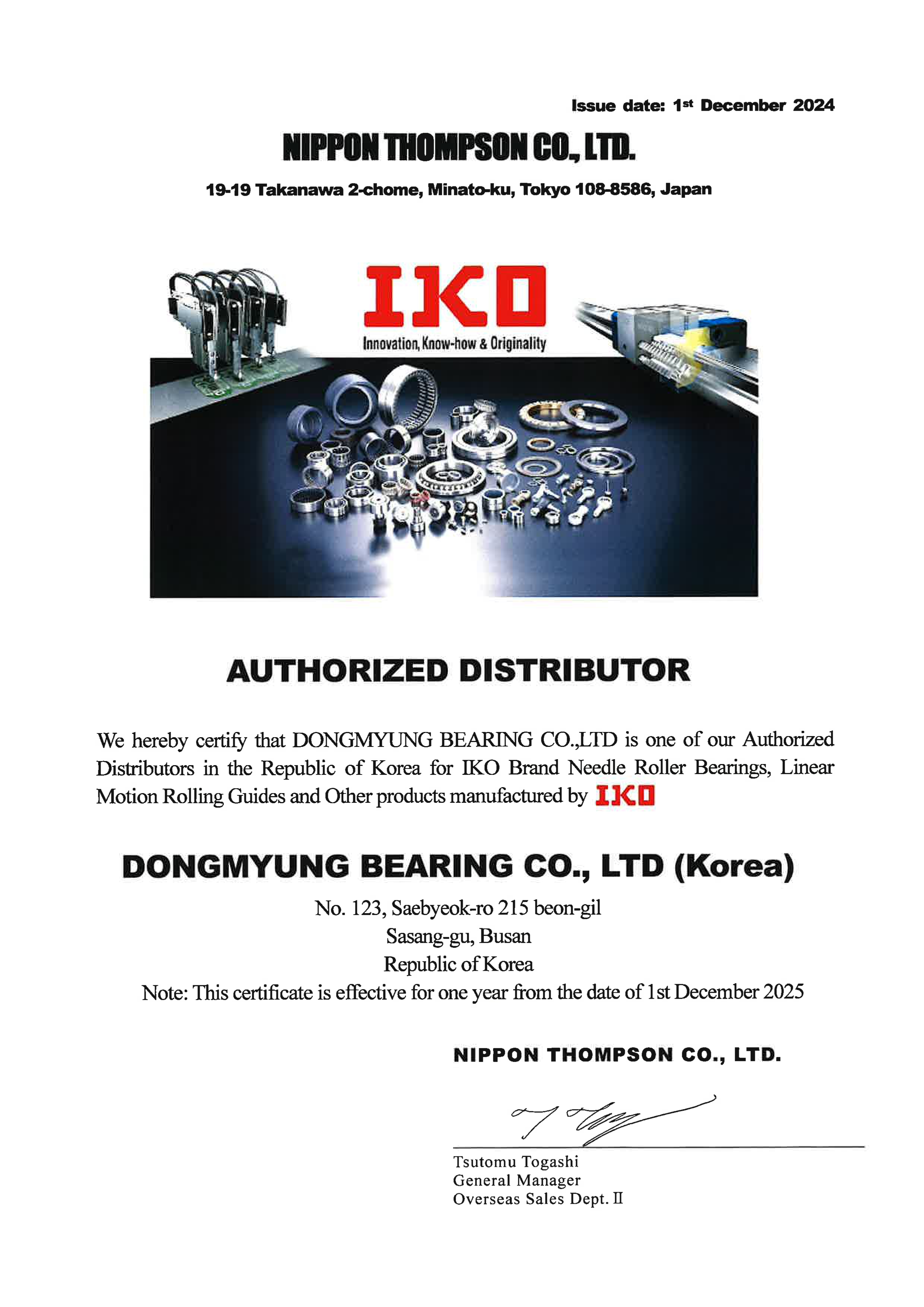 IKO 대리점 인증서
